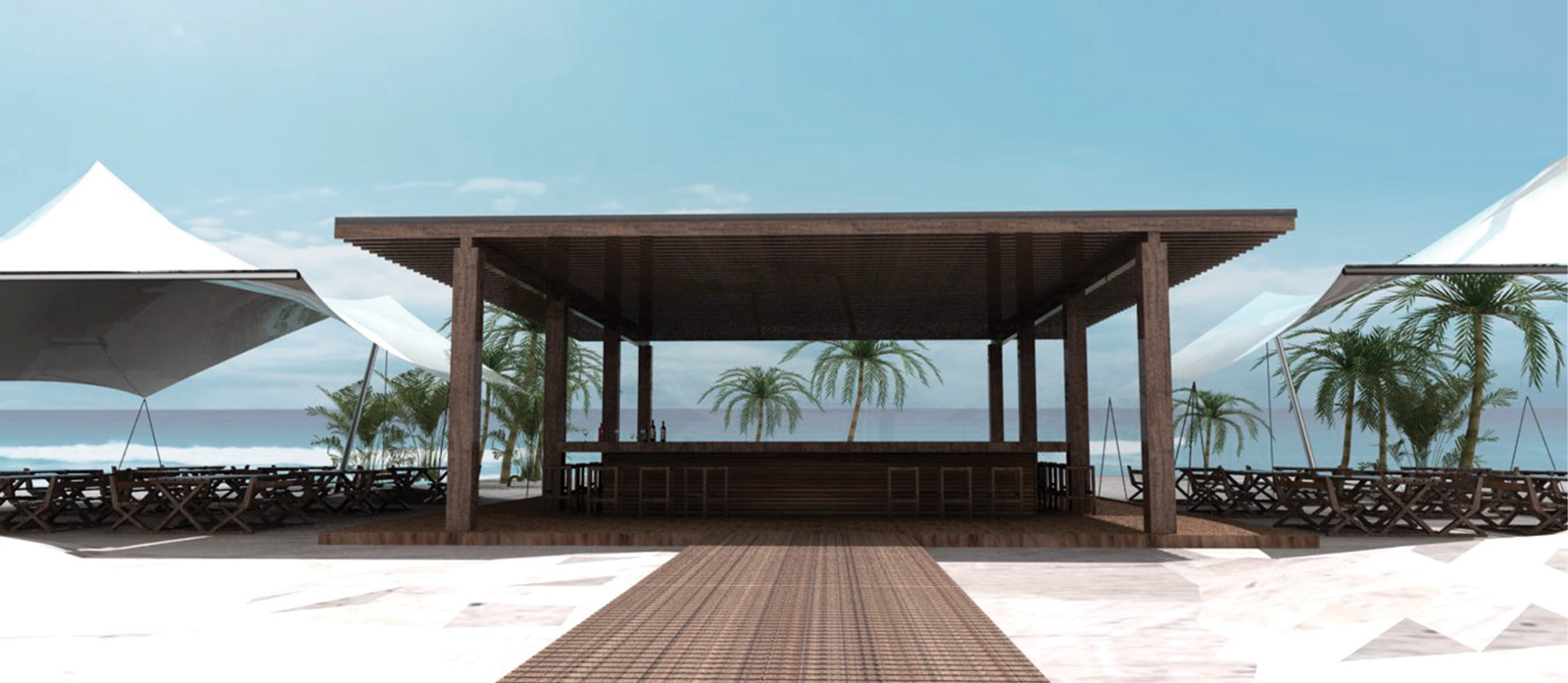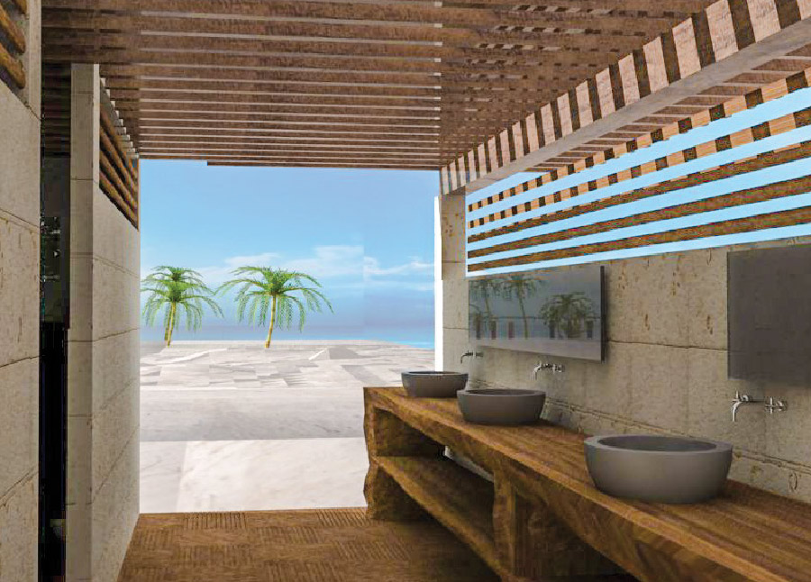 La estructura principal, construida con madera de alta calidad, refleja la perfecta armonía entre la naturaleza y la funcionalidad, brindando un espacio ideal para relajarse y disfrutar de la belleza del Caribe. Este club de playa no solo destaca por su diseño elegante, sino también por su capacidad de integrarse de manera orgánica con el paisaje circundante, convirtiéndose en un verdadero refugio junto al mar.